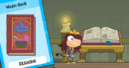 Get out of the bedroom and go up the stairs once again, then head over to the right. You will have to climb more stairs... Wow. This would be such a workout in real life! You're continuously climbing stairs. Then you'll come across an open book, and a bookshelf. First, grab the book from the bookshelf: How to Win Wishes and Influence Genies. You will take a page from it, which you'll need, and then grab the big book. The Big Book of Magic!