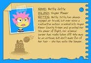 Betty Jetty is one of the villains of Super Power Island. She has the ability to fly, and she is the sister of Ned Noodlehead.[1]
