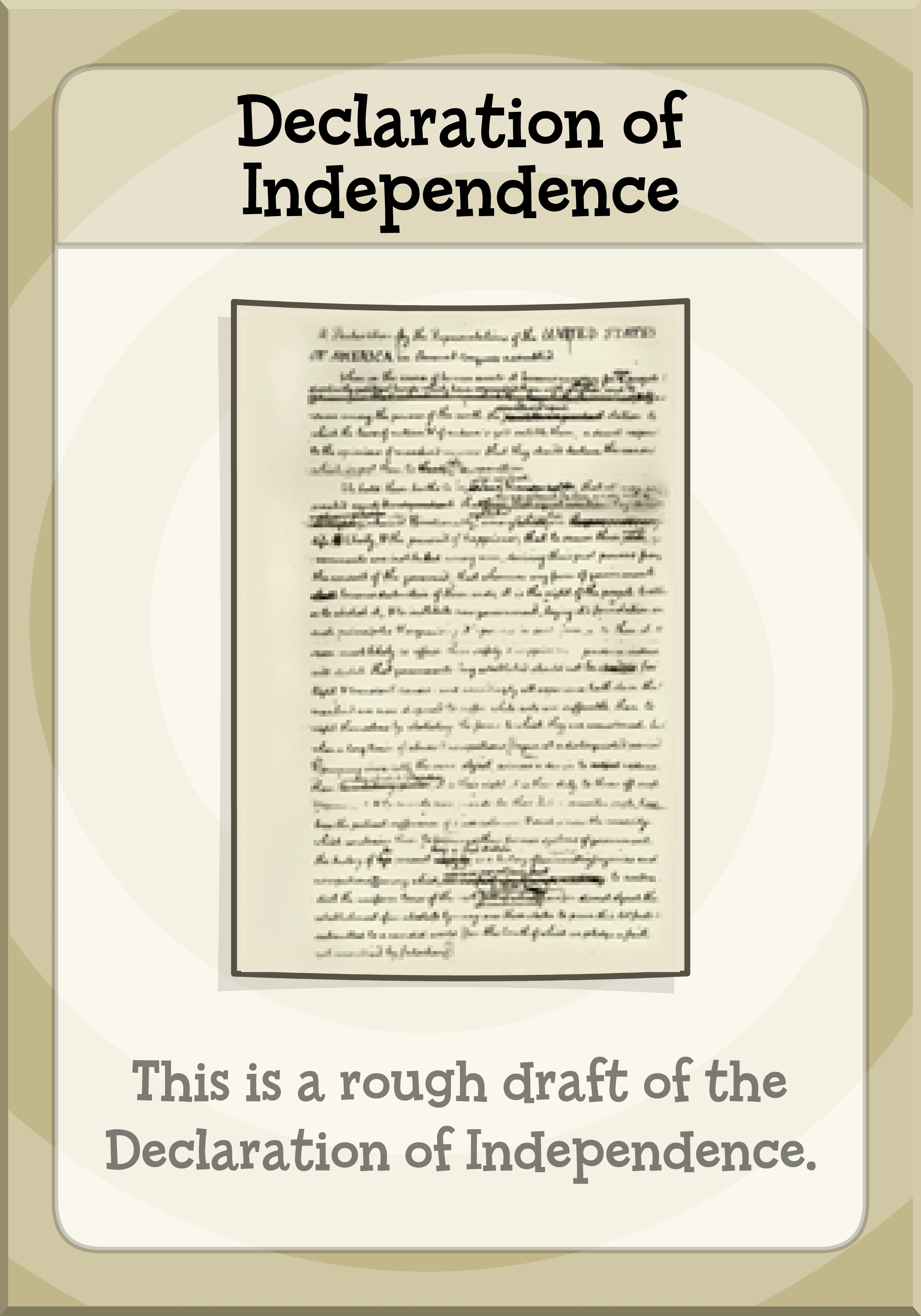 The Declaration of Independence is obtained by assembling a jigsaw puzzle for a man in the Timbuktu inn in the Mali Empire, 1387 AD on Time Tangled Island. When you return it to Thomas Jefferson in the Graff House (1776 AD), that time period will be restored.