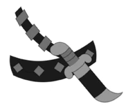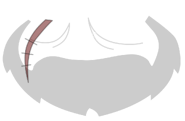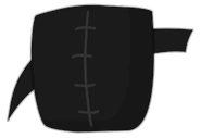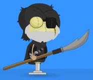 He wears a similar dark outfit to the other thieves, except his hat is slightly different. He also wears a scarf and belt. He has a black eyepatch with the scar over the eyepatch. He has tan skin and a grey beard. He has a nasty scar over his eye.