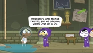 She was the focus of a post on the Creators' Blog a long time ago and was said to not brush her teeth daily. She also appears on another post, with a knight apologizing saying that maybe she needs to floss, talking about her teeth hygiene and her having bad breath.