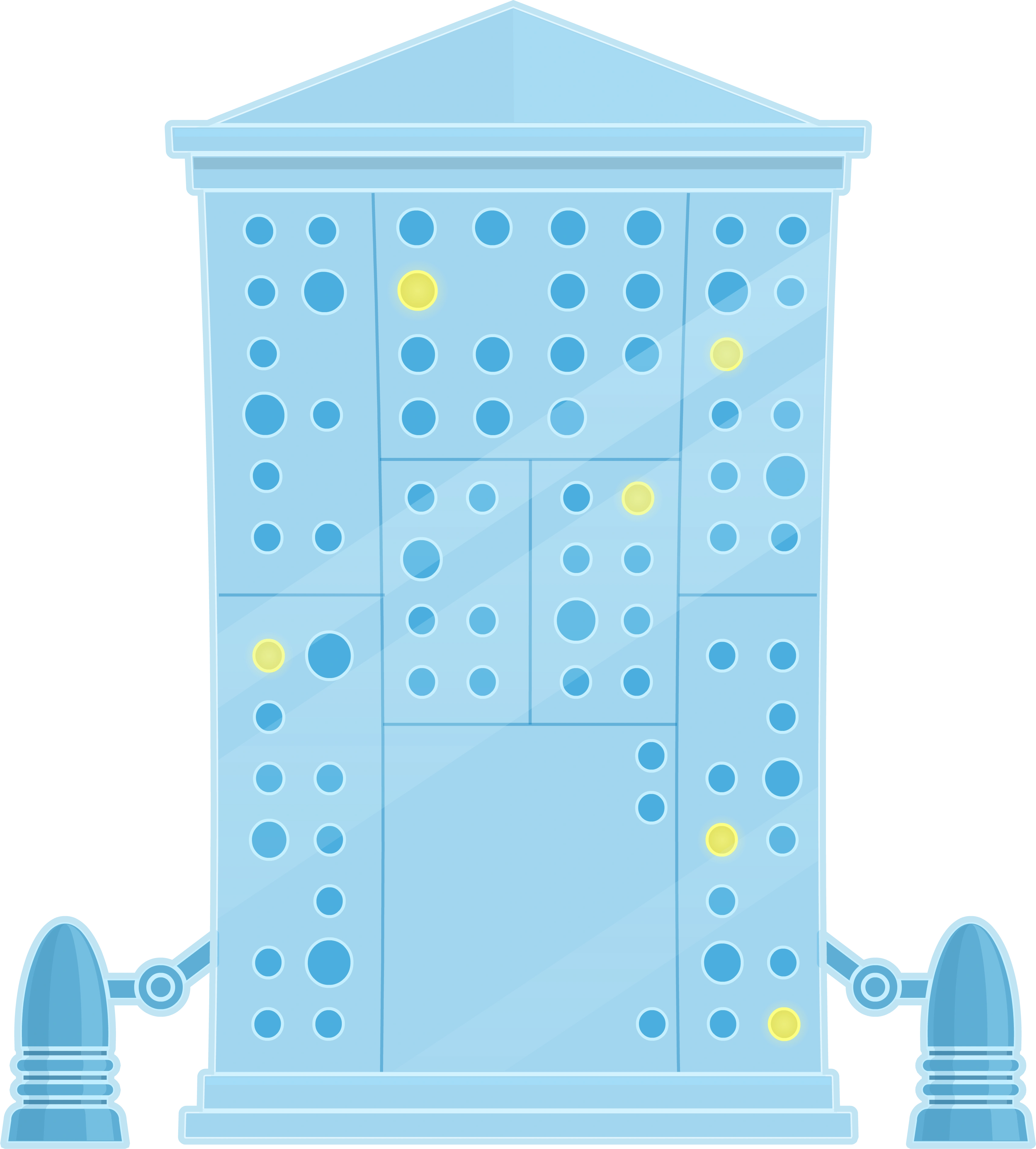 The Great Glass Elevator is a translucent container with buttons all over the insides. It also has two rocket boosters.