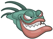 Hydra has green skin, sharp (magical) spines and teeth, thick lips, and a menacing glare. Its skin is covered with scales, even though it looks smooth, like a frog's.