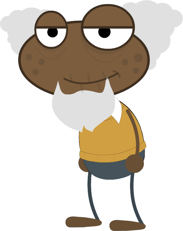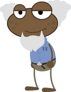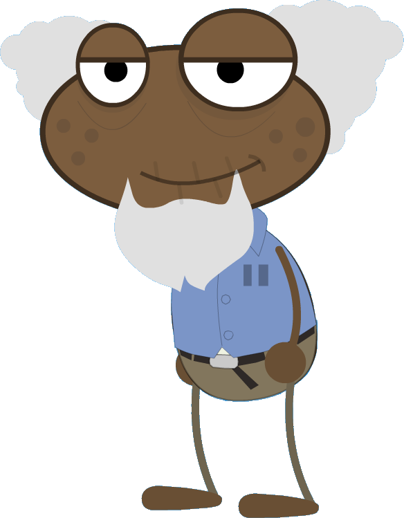 Patches is wearing the prison jumpsuit that everyone else in the prison on that island is wearing: a blue shirt with brown pants. Patches has dark skin with freckles on both of his cheeks, as well as a light-gray beard and light-gray hair on his head.