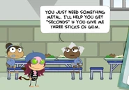 Day 4 starts and Patches yet again feeds the birds, and the seagull flies down from a different spot and eats up the birdseed, while the player climbs up and gets the 3rd and final egg that they need. Then, Patches talks about how is parole hearing is coming up, and hopefully he can get out of the prison this time. Lunch time comes and Patches doesn't change what he says or where he sits. But while the player is getting their job in the kitchen, they turn on the fan and stir the mashed potatoes. The mashed potatoes get sucked up and drop onto the plate that the player eats at, causing both Patches and Marion to be startled. Patches then says that they got a second helping, and then is told to go to bed.