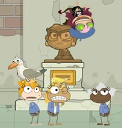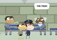 Patches is seen outside standing next to the warden's statue when the player goes outside for recreation. The player greets him by saying hello, and he happily replies back by saying that his name is Patches. The player gets curious about the bird on top of his head, and asks Patches if the bird is his. He says that he found her with a broken wing one day and decided to take her home. He then says that she's perfectly healthy now, but unfortunately has forgotten how to fly. As that happened, one of the officers of the prison tells everyone to fall in line so that the warden can speak with them. Patches tells the player to not say anything is he's not supposed to, as the warden walks right out of the prison. As the warden speaks, he notices that they have a new guest and tells everyone to move out of the way so that he can go speak to them. Once they go through their little argument, the warden turns back to everyone else. As he talks about how they think that there's still hope behind the walls of the prison, the warden brings up the Booted Bandit, and Big Tuna gets all angry with the player, saying that they set him up. Everyone else gets scared and runs over to the player. Big Tuna charges at you, only to be stopped and dragged away by an officer of the prison. The warden then tells everyone that that's what happens when they misbehave, and then tells them to carry on. While Patches isn't seen when the player goes to work, he is seen when the player goes to lunch. He is seen sitting across from Marion, saying that meal-time is the best time of the day. The player sits down next to both of them and takes a bite of the food at the table, only for them to immediately spit it out and call it disgusting. Les Moreland reminds the player that the walls of the prison are crumbling, and Sal Moreland adds onto that by saying the walls are crumbling down, and that they would be able to chisel their way out. Patches tells the player that all they need to do that is to get something metal, and Patches will help them get a second spoon if they give him 3 sticks of gum that the player got from work. The player give them to him, and asks how they're gonna pull this off so that they can get seconds. Patches tells the player that he'll cause a distraction, giving the player enough time go get another spoon. He then shouts out that his stomach hurts, and one of the guards says that he'll go look at the disturbance at the table. The player runs over and gets another spoon, while the guard asks what's wrong with him. A few seconds later, the guard notices that Patches was faking it the whole time, and says that if this happens again, then Patches will spend the night in solitary. Soon after that, Patches is ordered to go to his cell and go to bed.