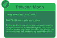- According to the rocket ship database, Pewter Moon is colder than Ice Planet.