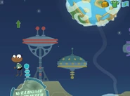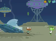 After the chosen one recovers the Excalibur on Astro-Knights Island, he/she crash lands it here. Inhabited by the Pewter Moon aliens, this place had been attacked by Mordred long before executing a final strike on Planet Poptropica. The coordinates for Pewter Moon are (Y-56 X-52).