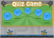 The Quiz Game was a multiplayer game for Common Rooms. While it was never implemented and it cannot be played in-game, its .SWF file remains in the files for Poptropica. The game would have had players alternating between answering questions, and the player with the most correct answers after 5 questions would have been the winner. The questions would've been about certain categories, like "Presidents," that the player could choose from.