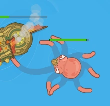Giant Squid - These giant beasts have 6 small arms and 2 extendable ones near the front that can grab and damage your ship.