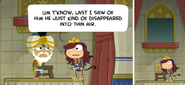 Even after all of this, he was still fond of his close friend/business partner, who he made his royal advisor. After hearing he disappeared into thin air, he lightly jokes that "that is like him", and ran off to find him.