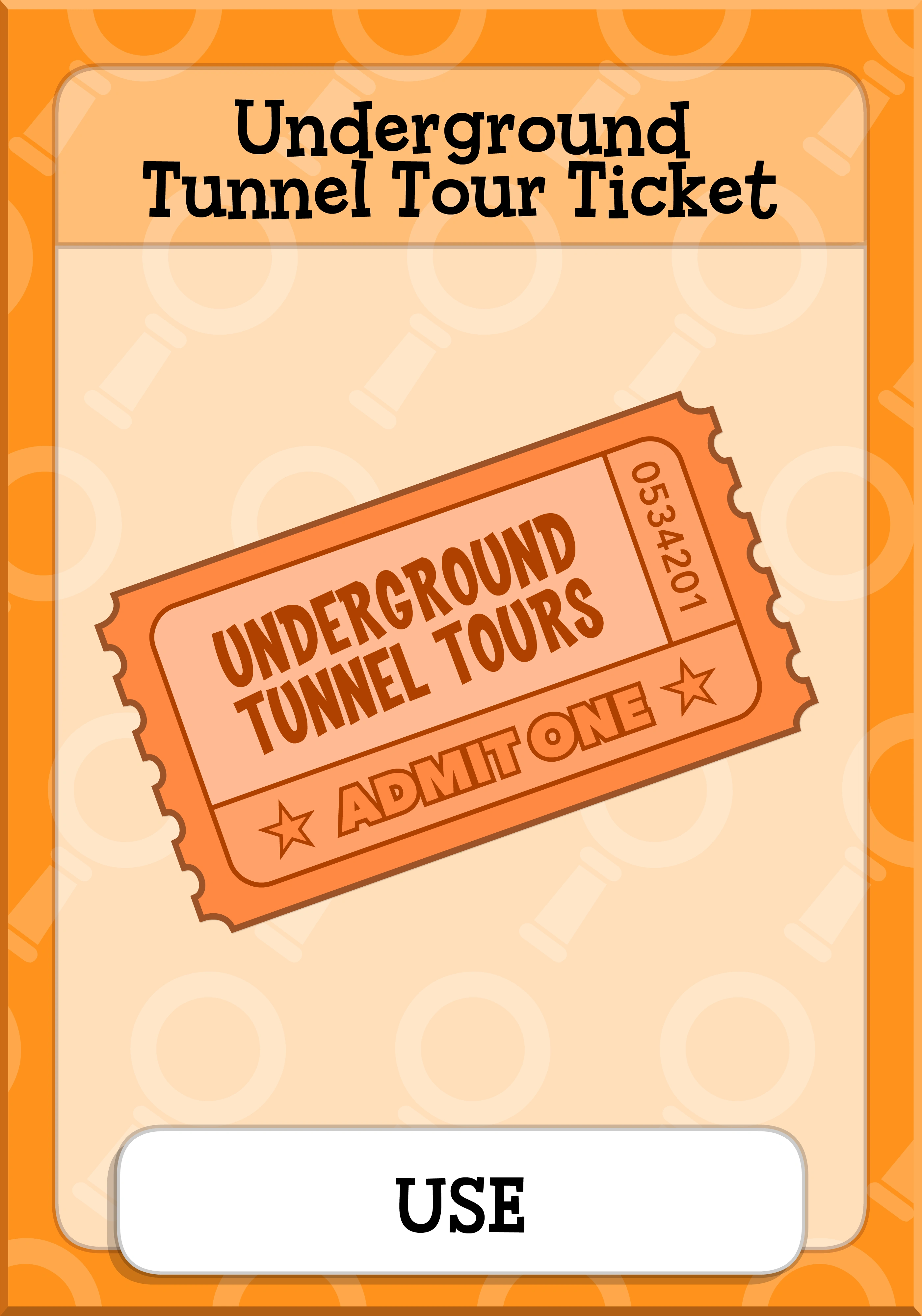 The Underground Tunnel Tour Ticket is an item on Counterfeit Island. It is obtained by giving the Orange-Bearded Tourist the Underground Tunnel Tour Tickets.