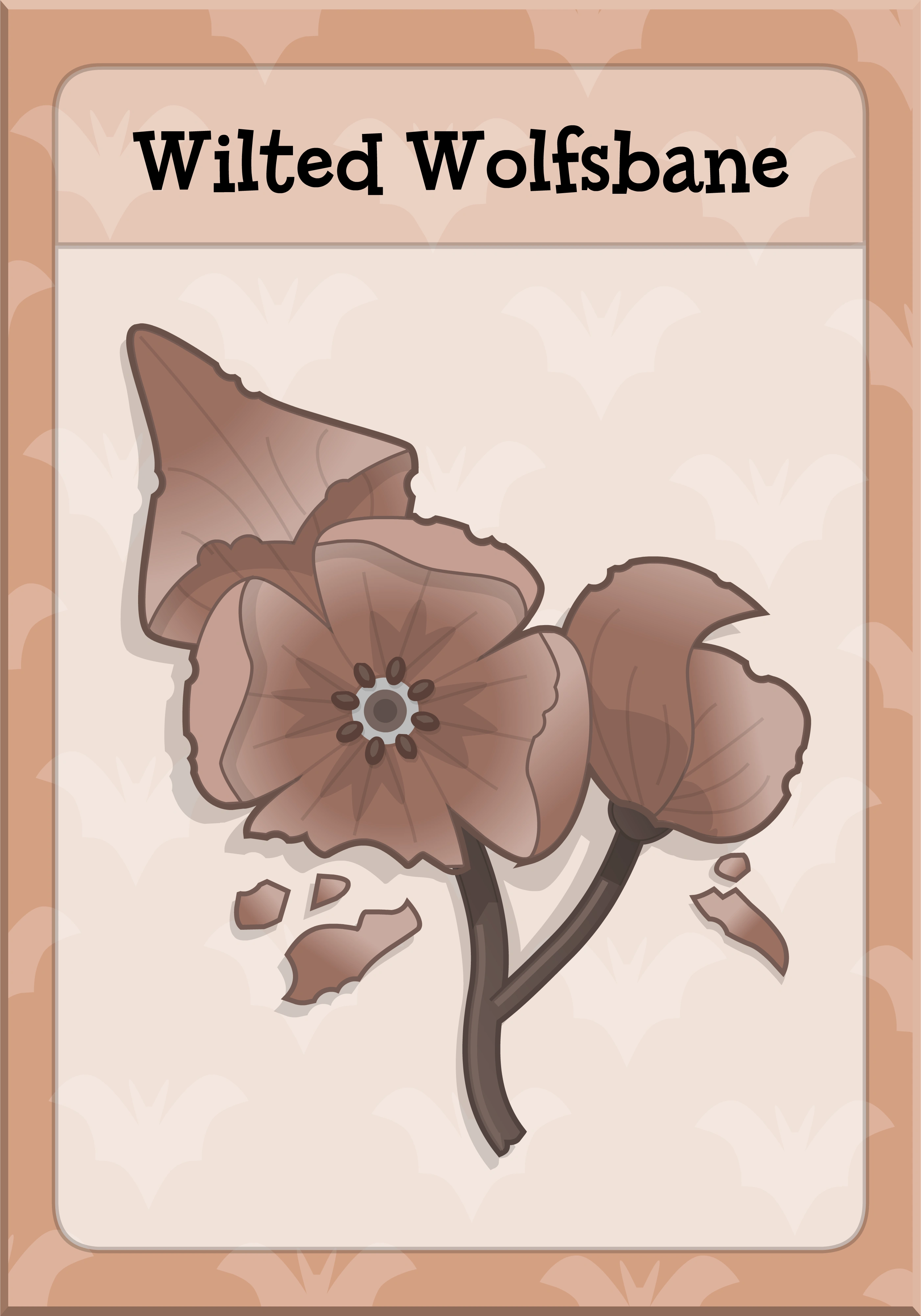 Wilted Wolfsbane is an item found on Vampire's Curse Island. It is one of three ingredients that are needed to create the Anti-Vampirism Serum.